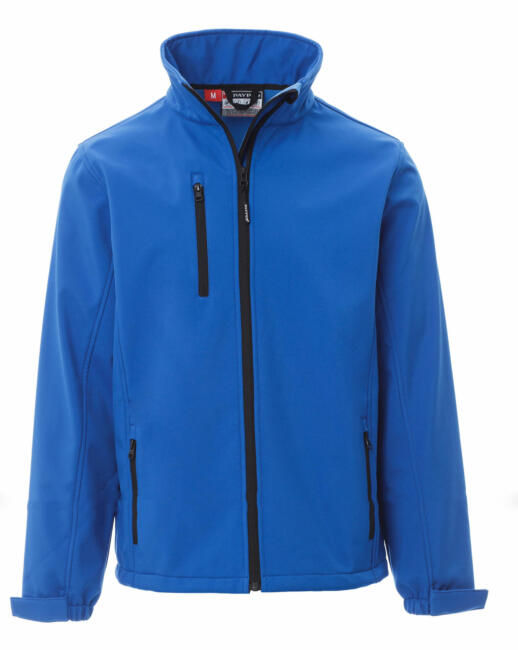 WP 8000 mm H₂O, WVT 5000 g/m² 24h. Giacca ergonomica da uomo, zip lunga nastrata, elastico e stringipolso in velcro, due tasche esterne con zip.