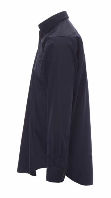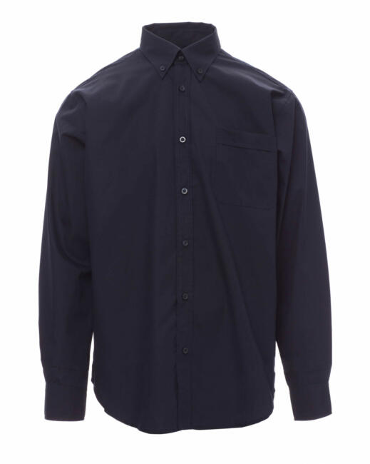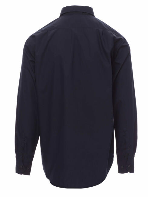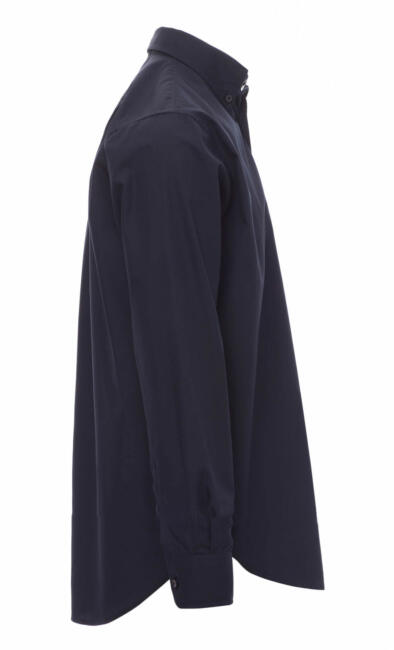 Camicia uomo dal titolo finissimo pettinato, colletto modello botton down inglese, polso stondato a due bottoni e un’asola, cannoncino cucito a vista e bottoni perlati, una tasca lato cuore; dietro: carré liscio.