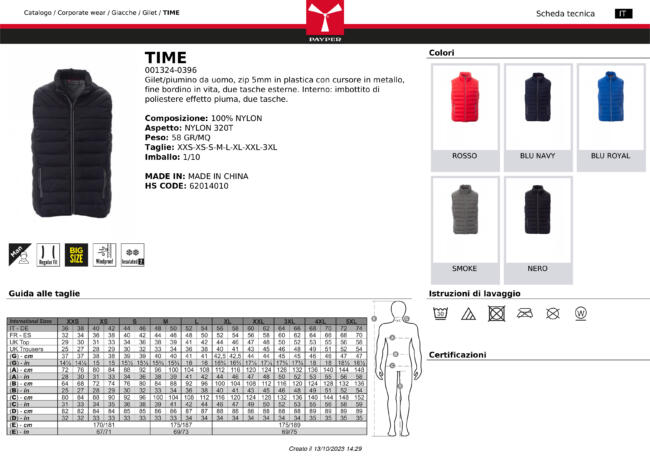 Gilet/piumino da uomo, zip 5mm in plastica con cursore in metallo, fine bordino in vita, due tasche esterne. Interno: imbottito di poliestere effetto piuma, due tasche.