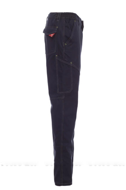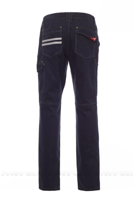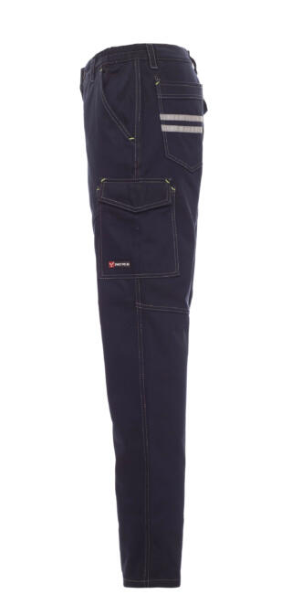 Pantalone unisex, invernale, elastici laterali e passanti in vita, chiusura con zip e bottone in plastica. Due tasche anteriori a taglio classico, una tasca laterale LOCK SYSTEM, un porta metro, due tasche posteriori una aperta e una con patta e velcro, inserti ed impunture a contrasto, bande reflex su tasca posterior. Cuciture a triplo ago. Impunture e cuciture in tono, con travette in contrasto giallo fluo, per il colore Total Black.