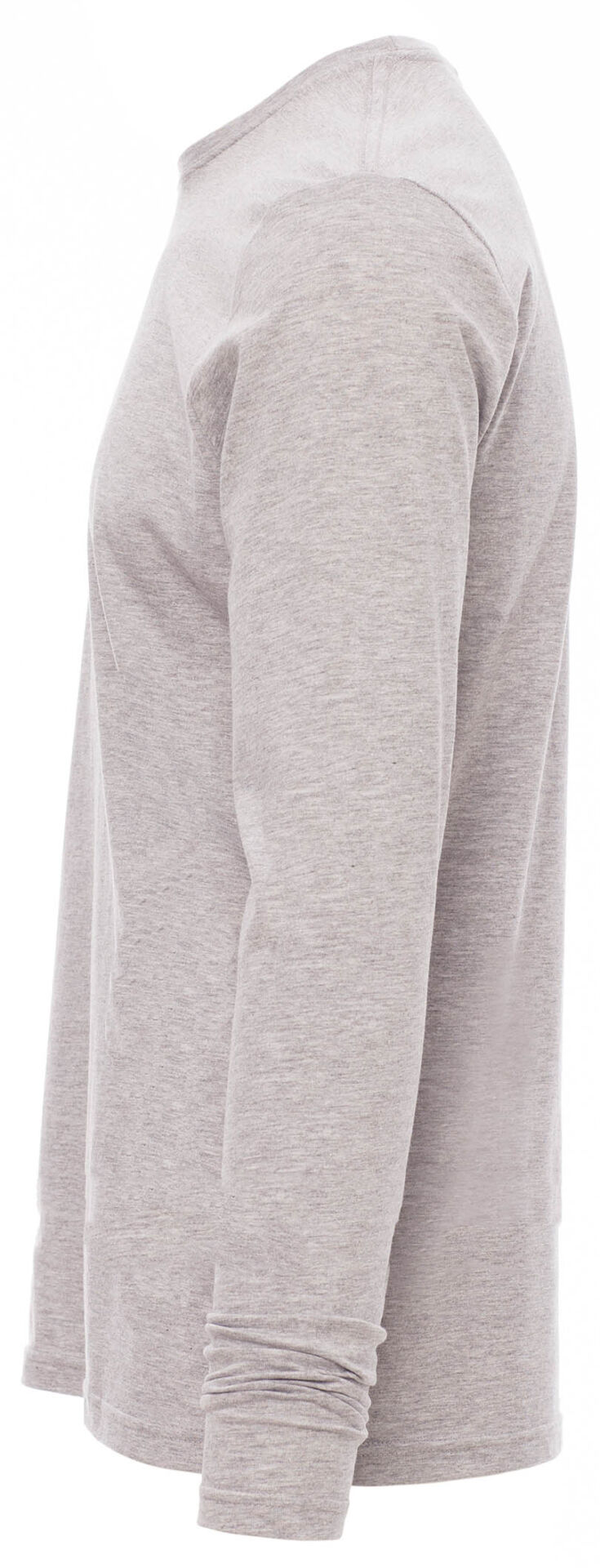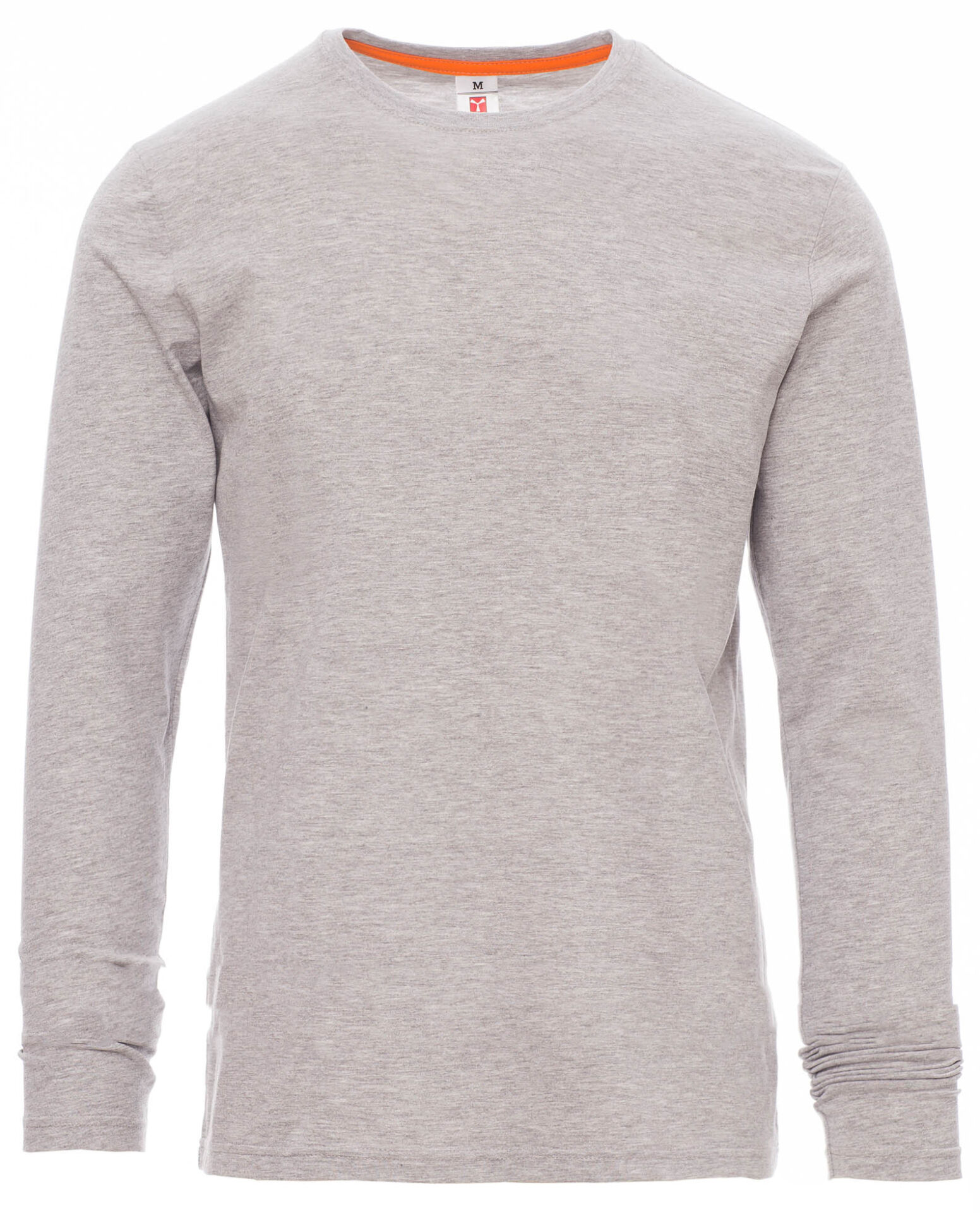 T-shirt da uomo girocollo manica lunga, colletto in costina misto spandex da 1.5 cm con cucitura ribattuta sul davanti, nastro di rinforzo da spalla a spalla in colore a contrasto visibile nel colletto, cuciture stretch, cucita lateralmente.